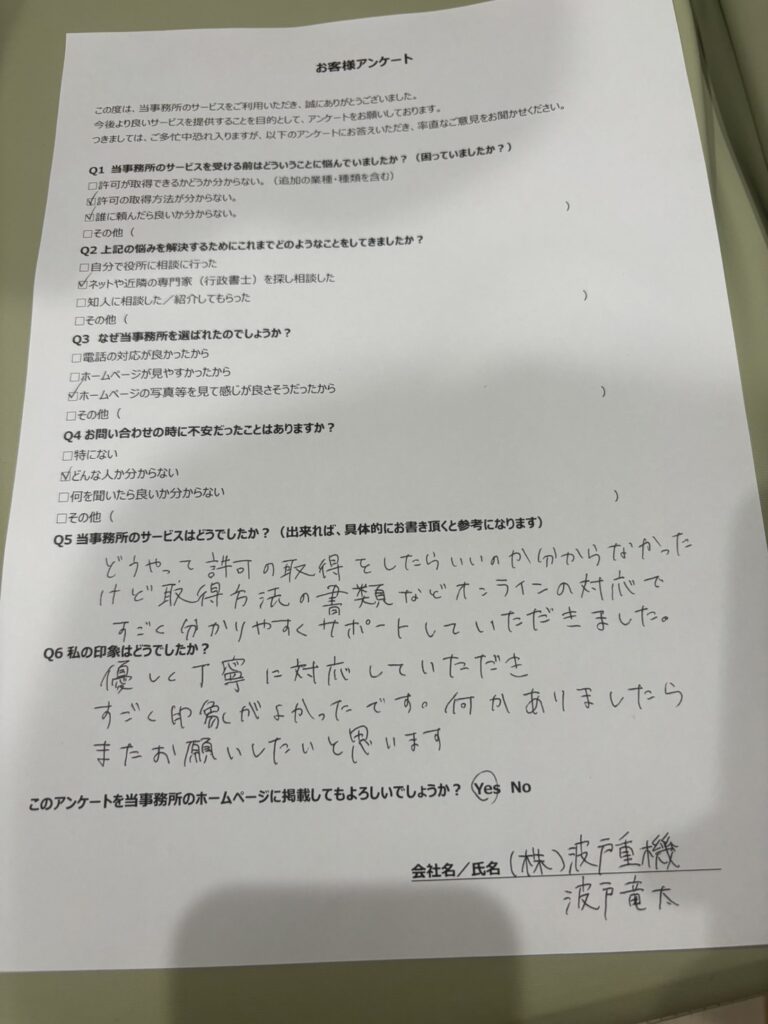 当事務所はその他の許認可や、融資支援、補助金申請なども行っておりますのでお気軽にご相談ください。
